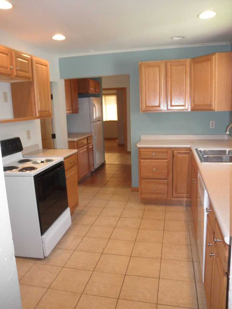 Everything is on one level – 5 bdrms and 2 full bathrooms. Off-street parking in the back.